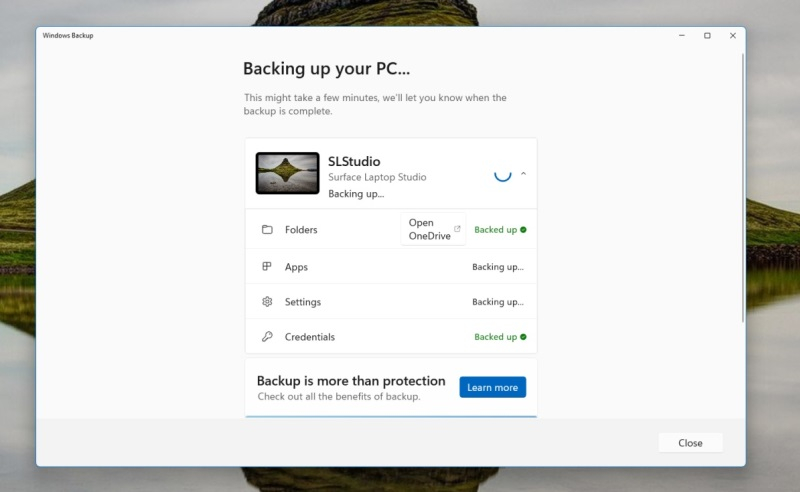 Outra novidade é o aplicativo Windows Backup, desenvolvido para criar backups e transferir dados para um novo computador. Quando você muda para um novo PC, os aplicativos da Microsoft Store serão fixados no mesmo local em que estavam no seu PC antigo. As configurações do sistema do dispositivo antigo também serão implantadas no novo dispositivo sem alterações.