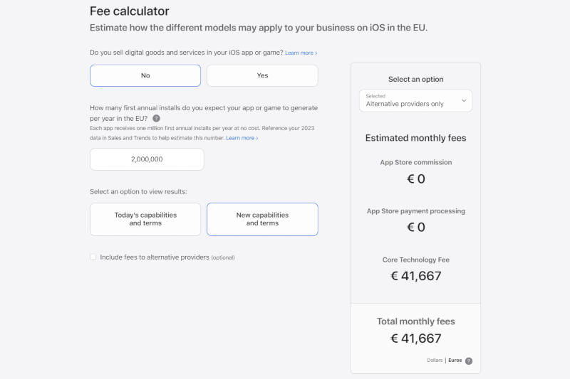 Os criadores de aplicações europeus que decidirem aceitar os novos termos de cooperação com a Apple terão de pagar uma “Core Technology Fee” (CTF) de 0,50 euros por cada primeira instalação de uma aplicação após atingirem um milhão de instalações num ano. Este modelo ameaça arruinar os criadores de aplicações gratuitas e shareware.