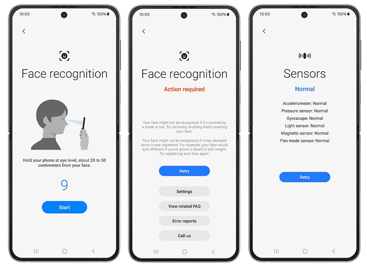 Um novo teste de sensor já está disponível nos membros da Samsung para verificar se o modo Flex está funcionando corretamente em dispositivos Galaxy dobráveis. Além disso, você pode diagnosticar erros associados à operação dos cartões SIM.