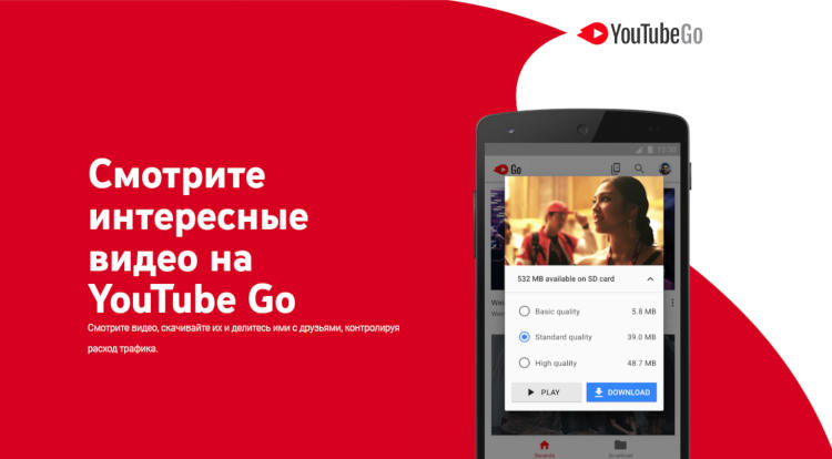 Os engenheiros do YouTube desenvolveram uma versão Go do aplicativo para funcionar em condições de conexão instável, volumes de tráfego limitados, bem como para smartphones de baixo custo e baixo desempenho. Após a estreia da versão lite em 2016, o aplicativo principal passou por várias otimizações – agora demonstra alta velocidade em dispositivos básicos e funciona de forma estável em condições de recepção ruins.