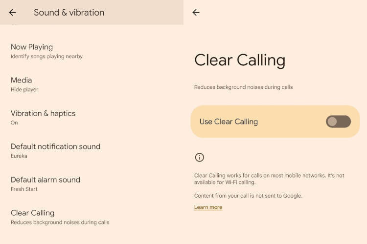A primeira versão beta da atualização trimestral do Android 13 revelou o recurso Clear Calling ou “chamadas limpas” – ele foi projetado para “reduzir o ruído de fundo durante as chamadas”. O item correspondente nas configurações de som do telefone foi descoberto pelo usuário do Twitter Mishaal Rahman.