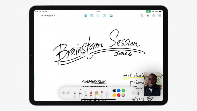 Haverá uma nova aplicação para esboços coletivos – Freeform. Isso permitirá que colegas ou pessoas com ideias semelhantes complementem uma única tela. Suporta Apple Pencil e funciona com vários tipos de documentos, incluindo PDF, fotos e outros conteúdos. A forma livre aparecerá ainda este ano.