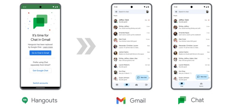 Observe que os chats de usuários existentes serão migrados automaticamente do Hangouts para o Chat. Além disso, o serviço Takeout permite que os usuários transfiram cópias de seus bate-papos do Hangouts gratuitamente antes que ele cesse as operações em novembro. Para incentivar os usuários a mudar para o Chat, os desenvolvedores anunciaram o lançamento de novos recursos, incluindo a capacidade de fazer chamadas diretas, compartilhar várias imagens ao mesmo tempo e muito mais.