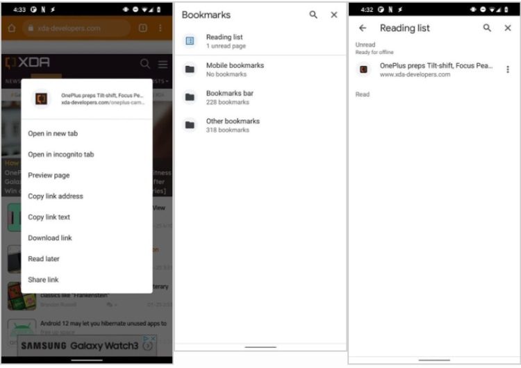 Este recurso permite que você reserve páginas para leitura posterior, assim como faz com o serviço Pocket, que é propriedade da Mozilla e possui profunda integração com o navegador Firefox. Vale ressaltar que a função de leitura diferida no Chrome para a plataforma iOS está presente desde 2017, mas esta ferramenta não está implementada nas versões Android e PC do navegador. As primeiras menções de que os desenvolvedores estão se preparando para implementar a funcionalidade de leitura adiada no Chrome para Android foram descobertas por entusiastas em meados do ano passado.
