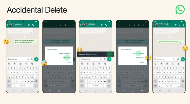 O novo recurso é chamado de “exclusão aleatória”. Ele é usado para exibir uma mensagem por 5 segundos, alertando sobre a exclusão de informações apenas dele e permitindo que você cancele essa ação. Esta ferramenta estará disponível em breve para todos os usuários em chats pessoais e em grupo do WhatsApp.