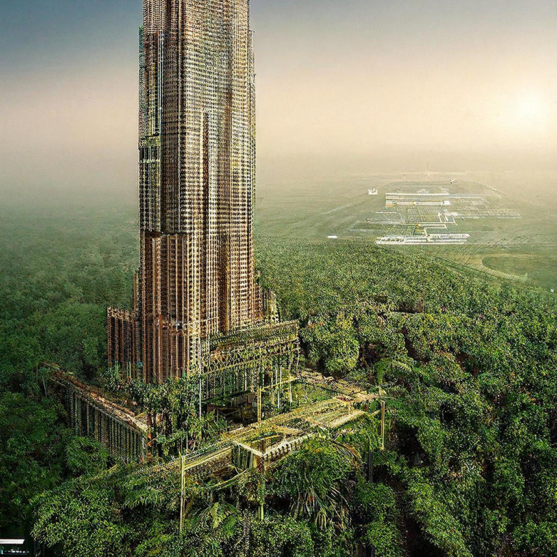 Abandonado Burj Khalifa coberto de selva, close-up