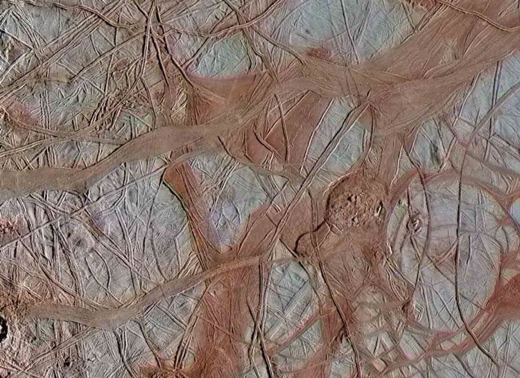 Fotografias originais da superfície da Europa foram obtidas usando o aparelho Galileo, usando filtros infravermelho próximo, violeta e verde. Em seguida, as imagens foram sobrepostas e processadas. As “manchas brancas” foram pintadas pelo artista ou pelo programa, então onde sem ele? Mas, em geral, isso não nega o fato de que podemos nos familiarizar mais com o alívio da Europa. Definitivamente, isso será útil nas futuras missões da Europa Clipper para encontrar sinais de vida neste satélite de Júpiter.