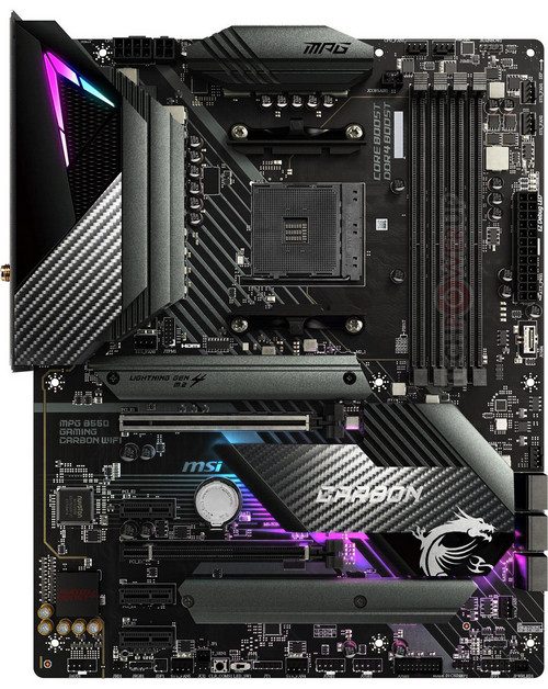 De acordo com a TechPowerUp, a MSI preparou a placa WIFI para jogos MPG B550 Carbon. Ela recebeu um poderoso subsistema de energia com 14 fases com grandes radiadores. A placa possui um par de slots M.2 para unidades de estado sólido, uma das quais é conectada via PCIe 4.0 diretamente à CPU e a outra via PCIe 3.0 através do chipset. Também são fornecidos um par de slots PCIe x16 (3.0 e 4.0) e três PCIe 3.0 x1. Observamos a presença de um módulo Wi-Fi 6 e uma interface de rede gigabit.