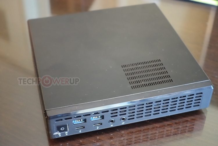 O dispositivo é fechado em uma caixa de apenas cerca de um litro. A placa-mãe é usada no conjunto lógico AMD A320. Você pode usar os processadores híbridos AMD na versão AM4 com uma energia térmica dissipada máxima (TDP) de até 65 watts.