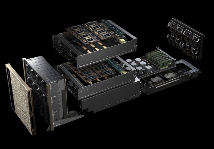 O sistema DGX-2 de alto desempenho agora oferecido pela NVIDIA combina 16 GPUs de última geração em um pacote compacto. A marca registrada recentemente DGX A100 indica a possibilidade de um sucessor com as GPUs da Ampere.