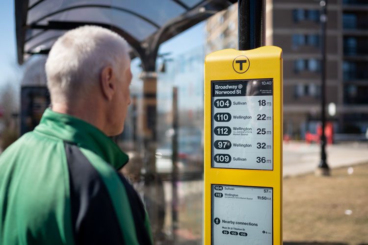 O gerenciamento do MBTA enfatiza que a implantação de painéis de informações é especialmente relevante em uma pandemia quando o transporte começa a ocorrer com muito menos frequência. No painel, os passageiros sempre podem ver as informações mais recentes sobre os intervalos de tráfego, e o princípio de operação dos displays E Ink, perfeitamente legíveis à luz do dia, torna a percepção das informações o mais confortável possível.