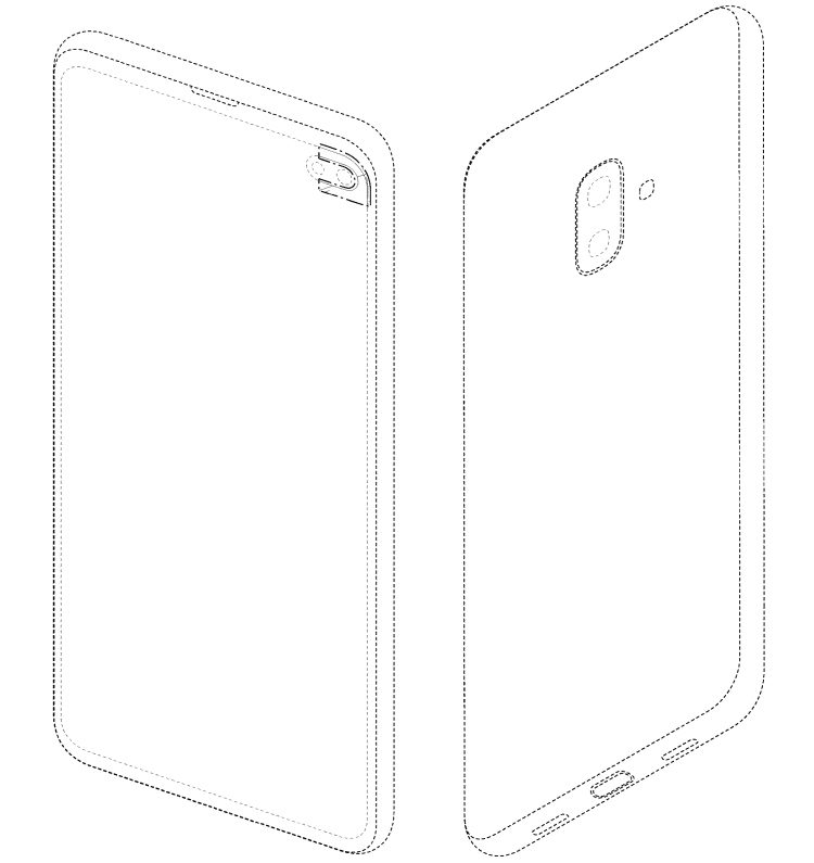 As ilustrações sugerem que o novo produto incorporará os recursos dos modelos Galaxy S10 + e Galaxy S9. Portanto, no canto superior direito da tela, você pode ver um orifício oblongo para a câmera frontal dupla. Segundo rumores, sensores para 10 milhões e 8 milhões de pixels podem ser usados.