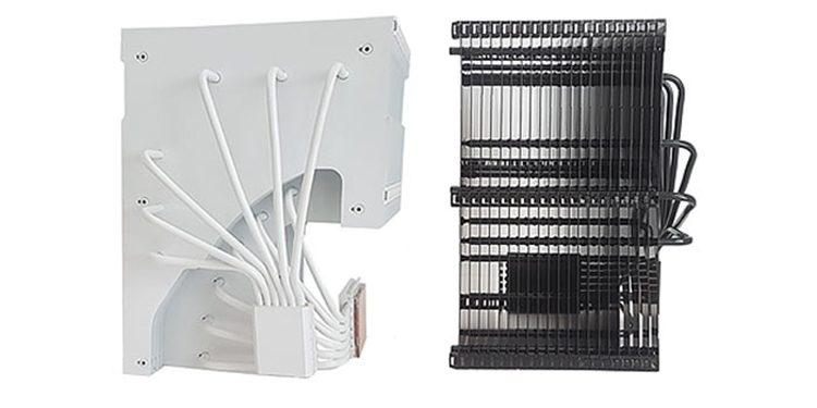 O design inclui um radiador e doze heat pipes – seis por CPU e GPU. Estão disponíveis duas opções de cores – preto e branco.