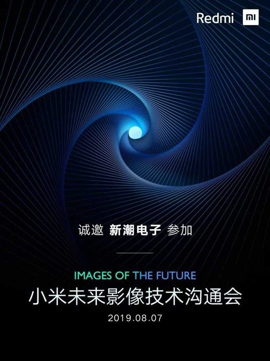 A imagem apresenta os logotipos Redmi e Mi, assim como o slogan “Imagens do Futuro”. Assim, a empresa sugere recursos inovadores em termos de fotografia.