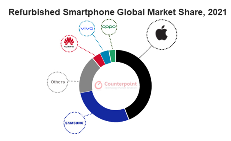Os smartphones usados da Apple estão em maior demanda: sua participação no total de vendas desses dispositivos é de 40%. A Samsung está em segundo lugar. Além disso, os dispositivos Huawei, Oppo e Vivo de segunda mão são populares.