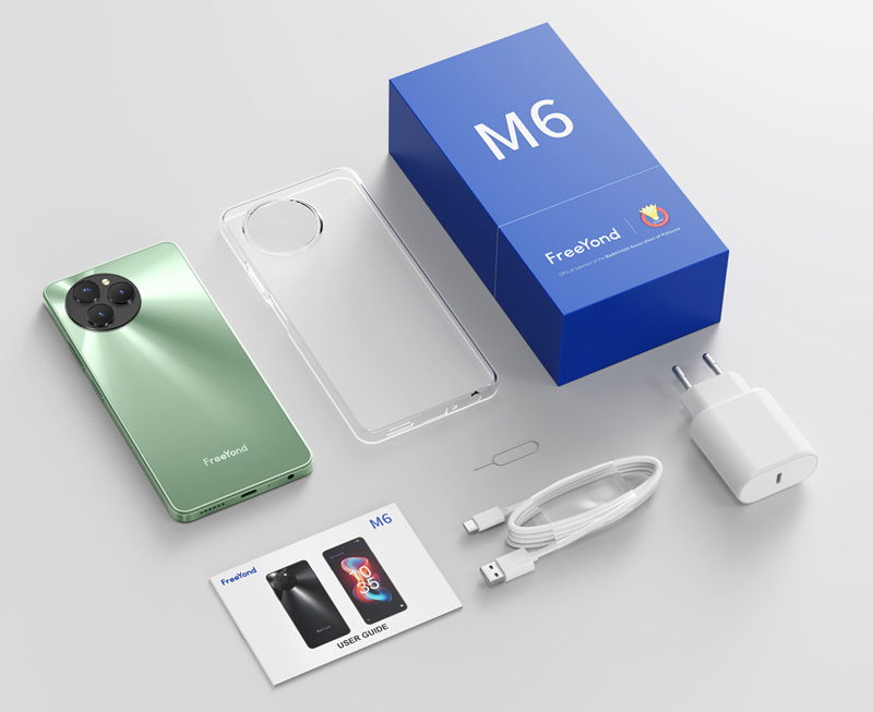 O FreeYond M6 vem com sistema operacional Android 13 pronto para uso. As especificações do aparelho incluem um chip NFC, que permite pagar compras pelo smartphone sem usar cartão de banco.