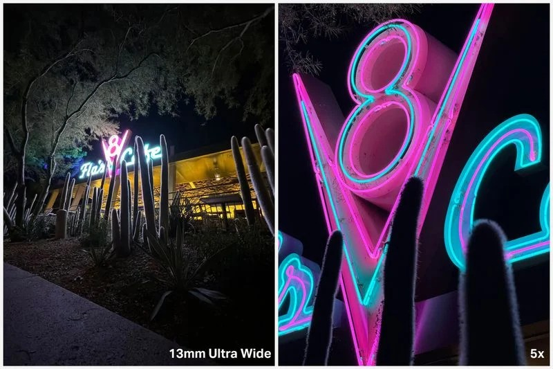Os especialistas consideraram a lente telefoto 5x com distância focal de 120 mm e tetraprisma uma conquista incrível em todos os aspectos: “provavelmente a melhor câmera que a Apple já criou”. Como você pode ver nas imagens de amostra, o zoom realmente funciona muito bem, mesmo em condições de fotografia noturna.