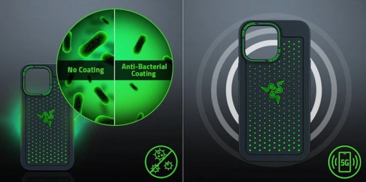 A capa tem uma superfície externa antiderrapante que fornece uma pegada segura no smartphone. No entanto, mesmo se escorregar de suas mãos, a base de polímero resistente pode absorver um impacto muito forte. A Razer afirma que a caixa é revestida com uma camada protetora antimicrobiana que impede o crescimento de bactérias. O case é totalmente compatível com Qi Wireless Charging e Apple MagSafe.