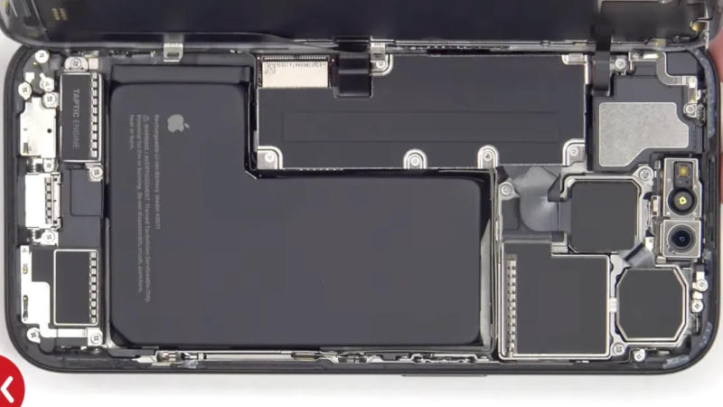 Os autores da análise do PBKreviews confirmaram que para substituir a parte traseira ela precisa ser aquecida, é relativamente fácil remover e desconectar o cabo da parte traseira da placa. O vidro traseiro abriga a bobina de carregamento sem fio MagSafe, flash LED e conectores de microfone. Vale ressaltar também que a marca e o logotipo da fabricante desapareceram do chip Apple A17 Pro – talvez a fabricante tenha feito isso por sua propensão ao sigilo, o que ajuda a evitar vazamentos.