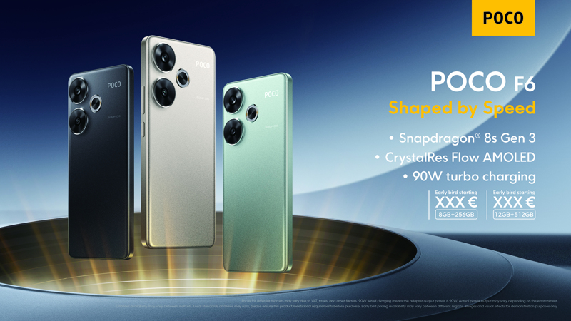 O smartphone Poco F6 custa US$ 379 para a versão básica com 8 GB de RAM e 256 GB de memória flash. A modificação com 12 e 512 GB de memória custa US$ 429. Descontos são fornecidos para os primeiros compradores.