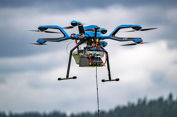 A operadora americana AT&T desenvolveu um veículo aéreo não tripulado capaz de fornecer cobertura 5G a uma área com comunicações instáveis. O dispositivo, apelidado de 5G Flying COW (Cell on Wings) é capaz de fornecer recepção de sinal confiável em uma área de cerca de 26 km², estando a uma altitude de cerca de 100 m.
