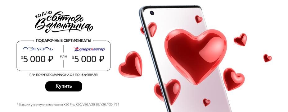 Ao comprar um smartphone vivo V20 com uma câmera selfie de 44MP com autofoco rodando Android 11 e um modelo vivo V20 SE com uma câmera principal de 48MP e 33W FlashCharge, os compradores receberão um certificado no valor de 2.500 rublos.