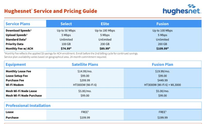 Os planos Elite e Fusion oferecem velocidades de downlink de até 100 Mbps por taxas mensais de US$ 90 e US$ 110. A velocidade da conexão de saída atinge apenas 5 Mbit/s. Em ambos os casos, haverá um limite de transferência de dados em alta velocidade de 200 GB por mês. Após ultrapassar o limite, o assinante poderá utilizar a Internet em velocidades reduzidas.