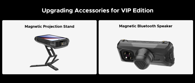 A Edição VIP vem com um alto-falante Doogee SnapBeat com suporte magnético que também funciona como suporte, proporcionando estabilidade ao dispositivo em superfícies irregulares. Com o smartphone Doogee V Max Play, você pode organizar um filme ou dar uma festa em qualquer condição — em um acampamento, durante uma caminhada ou na praia.