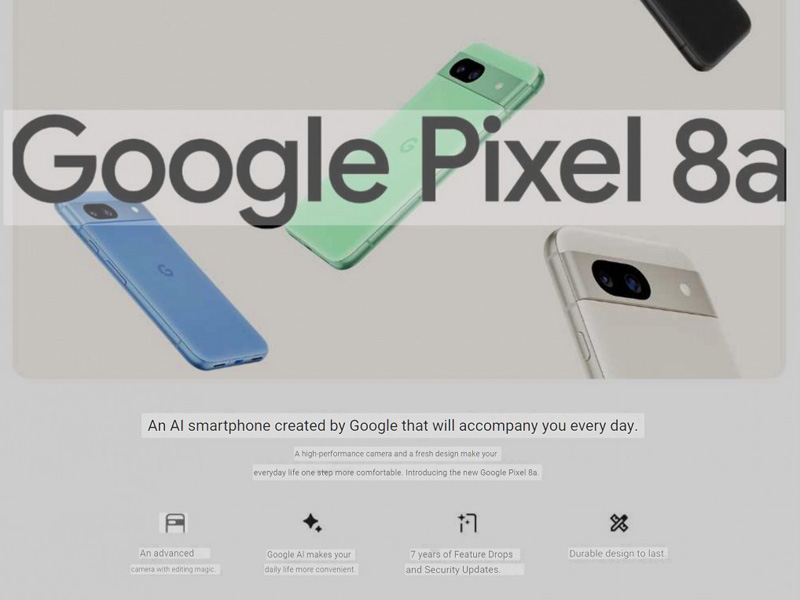 Aparentemente, esta é uma descrição do Google Pixel 8a, que será divulgada no site da empresa após o anúncio do novo produto. O texto afirma que o Pixel 8a é um “smartphone com inteligência artificial” que irá “acompanhá-lo todos os dias”. Embora o suporte de IA não seja novidade para a série de smartphones Pixel, os recursos de IA são enfatizados neste material.