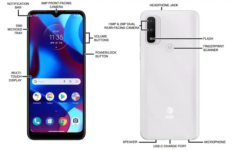 Na parte superior do Moto g Go há um conector de áudio de 3,5 mm, na parte inferior há um microfone, grade de alto-falante e uma porta USB tipo C. Pode-se supor que o smartphone receberá um chipset de nível básico da UNISOC, RAM com capacidade de 2 GB ou mais e um sistema operacional Android Go pré-instalado.