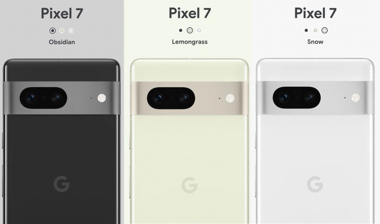 Cada um dos smartphones da nova série estará disponível em três cores de carroceria. Em particular, o Pixel 7 e o Pixel 7 Pro serão lançados nas versões Obsidian (preto) e Snow (branco). O Pixel 7 também possui uma variante Lemongrass (verde claro), enquanto o Pixel 7 Pro possui uma variante Hazel (cinza com um tom esverdeado).