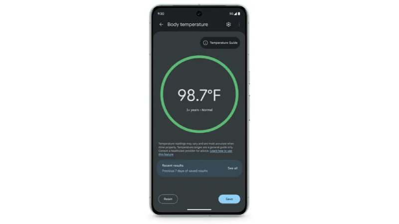 A empresa chama essa opção de “recurso de nível médico”, indicando que recebeu a aprovação do FDA. Os usuários do Pixel 8 Pro podem usar o smartphone para escanear a testa e medir a temperatura corporal. As medições podem ser salvas em seu perfil Fitbit para uma “compreensão mais profunda” de sua saúde e bem-estar.