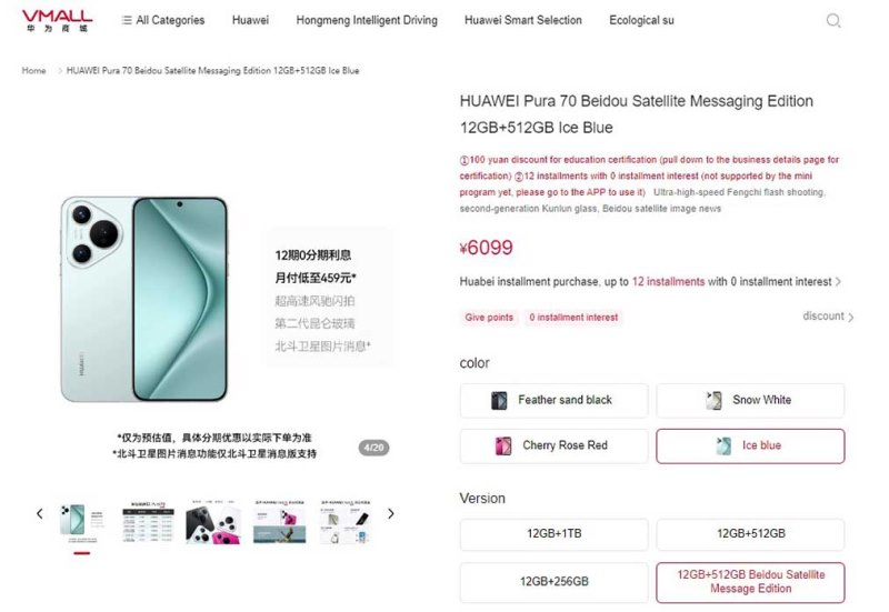 Os compradores poderão escolher entre várias versões do dispositivo. O Pura 70 Satellite SMS Edition com 12 GB de RAM e 256 GB de armazenamento é vendido por cerca de US$ 770, o modelo com 12 GB de RAM e 512 GB de ROM custará US$ 840, e para a versão com 12 GB de RAM e 1 TB de ROM você terá que pagar aproximadamente $ 975. No momento, o novo produto está disponível para compra na China e dificilmente será lançado fora do mercado interno.