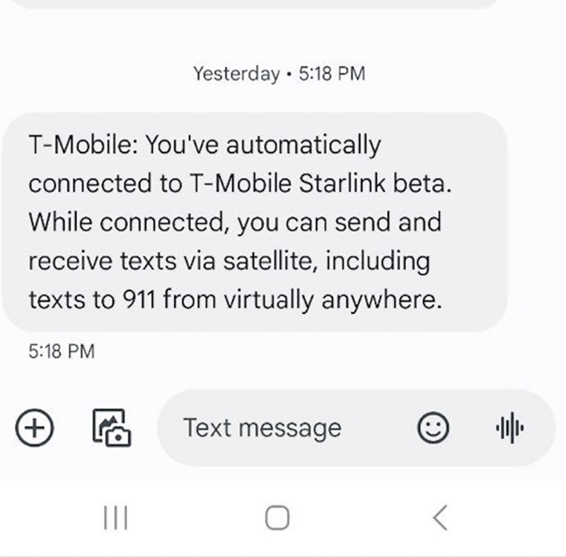 Paul Byrd, o proprietário do smartphone Samsung Galaxy S24+, foi um dos primeiros usuários nos Estados Unidos que obteve acesso ao serviço SpaceX Satellite com uma conexão direta com uma rede celular (direta para célula) como parte de um Programa beta gratuito para assinantes da T-Mobile separados. Ele aproveitou o serviço de satélite durante a caça naquela parte do Alabama, onde não há revestimento móvel. “Tudo funciona como afirmado”, disse ele ao recurso PCMAG. Berd disse que trocou mensagens, estando em uma floresta densa onde a recepção do sinal era difícil devido a árvores. “Isso não é tão rápido quanto o envio de mensagens de texto”, disse ele, “mas pude me comunicar com outras pessoas na zona onde não tinha um sinal celular”.