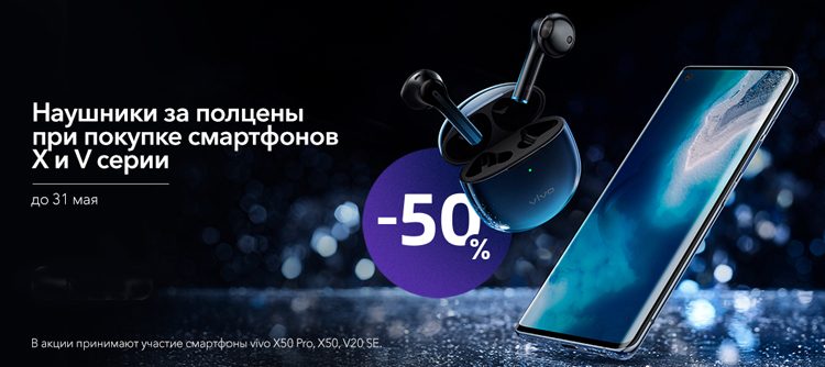 Vivo anunciou o início da ação de maio, no qual os descontos em fones de ouvido sem fio dão. Os clientes dos smartphones da série principal Vivo X50 receberão um desconto de 50% na compra de fones de ouvido sem fio TWS Neo, e os compradores de smartphones Vivo V20 SE receberão um desconto de 50% na compra de fones de ouvido sem fio de fones de ouvido sem fio esportivo.