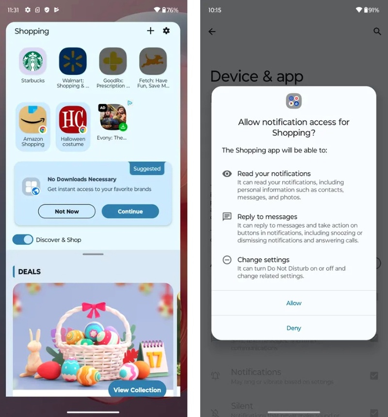 A gaveta de aplicativos contém várias “pastas” baixadas automaticamente. Na verdade, esses são aplicativos centrais – Shopping, Entretenimento e GamesHub, cada um dos quais é uma coleção de outros aplicativos, em sua maioria desnecessários, dos quais há incontáveis ​​números em oferta. A desativação dos aplicativos recomendados abre o aplicativo Discover, que pede irritantemente que você clique em links comerciais e “libere sua experiência de compra”.