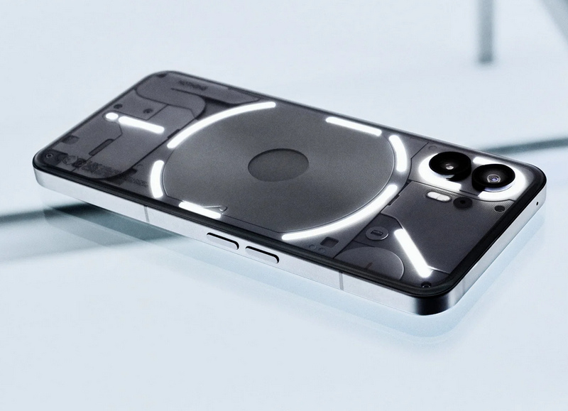 Nothing Phone (2) mantém a principal característica de seu antecessor – a luz de fundo Glyphs exclusiva que adorna a parte traseira transparente do smartphone. A luz de fundo ainda é branca, mas possui mais LEDs (33 em vez de 12). Ele tem novidades, e agora, ao invés de piscar em chamadas e notificações, além de informar que está conectado para carregar, a luz de fundo pode indicar o nível de volume e outros parâmetros do smartphone. Além disso, Nothing oferecerá mais animações de destaque no novo produto, e agora será possível definir diferentes animações para notificações de diferentes aplicativos.