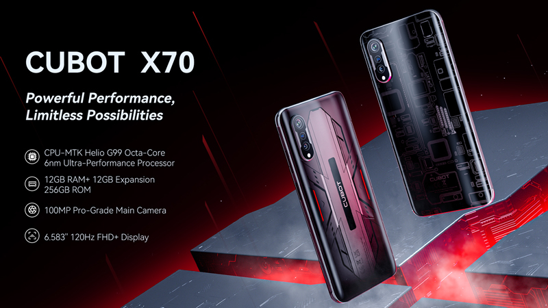Alimentado por um processador MediaTek Helio G99 octa-core de 6 nm com clock de até 2,2 GHz e alimentado por Mali-G57 MC2, o smartphone oferece desempenho de alto desempenho em aplicativos exigentes e jogos pesados, facilitando o manuseio de qualquer tarefa que você colocar frente a isso. Como relata o Cubot, com o Cubot X70 você pode esquecer os atrasos e travamentos nos aplicativos. O dispositivo suporta multitarefa e possui amplos recursos multimídia.