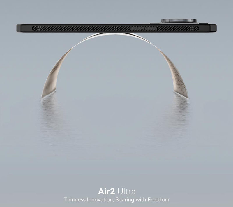 O corpo é reforçado com uma estrutura CarbonEdge resistente a altas temperaturas, fricção e corrosão, aumentando ainda mais a durabilidade do smartphone. Air2 Ultra pesa 230g.