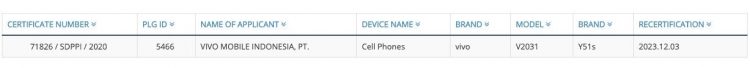 Além disso, o novo produto recebeu um certificado do regulador indonésio SDPPI. O último indica que o dispositivo foi apelidado de Vivo Y51s. Para efeito de comparação, o modelo “regular” Y51 na Indonésia aparece sob o número de modelo V2030.