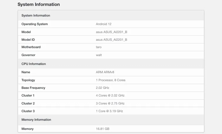 Enquanto isso, o ROG Phone 6 Ultimate foi apresentado no popular Geekbench com um processador Qualcomm Snapdragon 8+ Gen 1 (até 3,2 GHz), 18 GB de RAM e sistema operacional Android 12.
