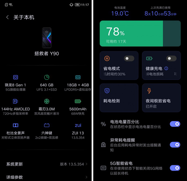 O gerente de produtos da Lenovo, Lin Lin, postou capturas de tela no Weibo revelando os principais recursos do smartphone para jogos Legion Y90. Processador Qualcomm Snapdragon 8 Gen 1 octa-core (até 3,0 GHz), acelerador gráfico Adreno de próxima geração e modem Snapdragon X65 5G confirmados.
