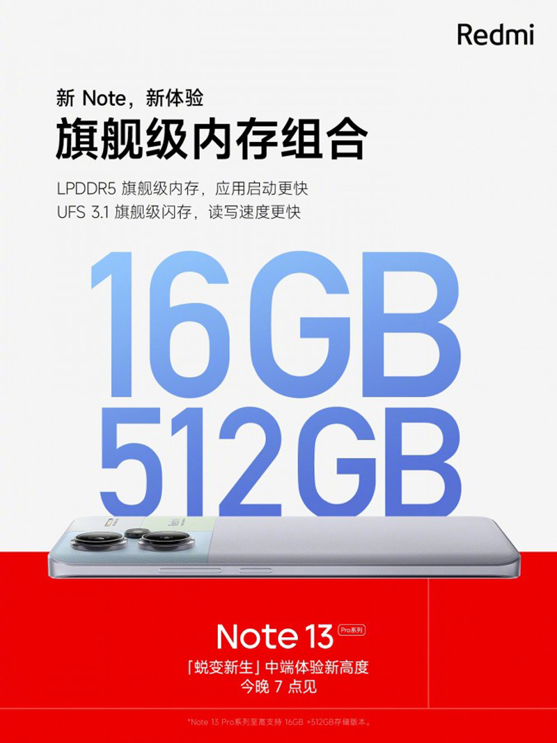 Hoje, espera-se que a Xiaomi apresente uma nova série de smartphones Redmi Note 13 Pro. Antes do evento, a empresa revelou novos detalhes sobre esses dispositivos. De acordo com a página oficial da Redmi no Weibo, a série Note 13 Pro oferecerá um smartphone com 16 GB de RAM LPDDR5 e 512 GB de armazenamento flash UFS 3.1, que geralmente é encontrado em smartphones premium e emblemáticos, em vez de telefones de gama média.
