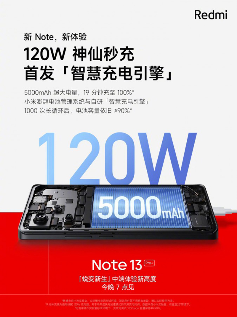 A mensagem não indica a que modelo se refere – Note 13 Pro ou Note 13 Pro+, embora possamos assumir que estamos a falar deste último. A página do produto também inclui um teaser sobre suporte para carregamento rápido de 120 W e bateria com capacidade de 5000mAh. Segundo analistas do site GSMArena.com, o modelo Note 13 Pro+ possui essas características, enquanto o smartphone Note 13 Pro provavelmente terá menor potência de carregamento, por exemplo, 67 W.