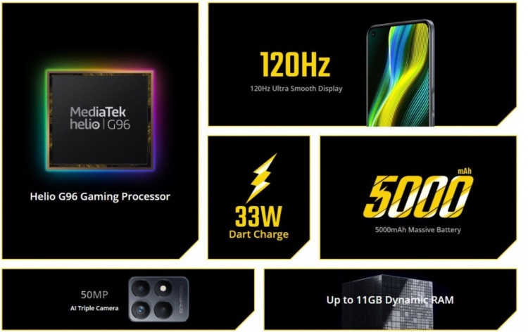 Como esperado, a fabricante chinesa de smartphones Realme apresentou um novo dispositivo Narzo 50, que será o sucessor do Narzo 30 do ano passado. O smartphone recebeu tela de 120Hz, processador Helio G96 e suporte para carregamento rápido de 33W. As vendas no varejo começarão no início do próximo mês.