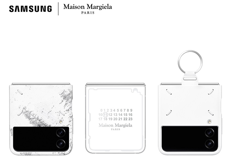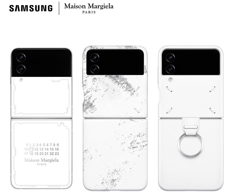 O Galaxy Z Flip4 está disponível na assinatura Maison Margiela branco com um acabamento fosco tecido no smartphone com um toque de cinza para criar o tom perfeito de branco. O smartphone também usa a técnica de decoração da Maison Margiela, que “remove as camadas externas de um objeto, revelando seu núcleo com finas linhas translúcidas que representam os circuitos internos do telefone”. Além disso, o Samsung Galaxy Z Flip Maison Margiela Edition possui uma moldura branca prateada fosca para “equilíbrio de branco perfeito”.