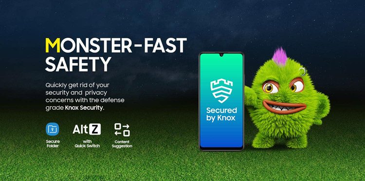 Na parte de trás da galáxia M42 5G, não há scanner de impressões digitais, e também não é incorporado no botão liga / desliga localizado no lado direito do caso. Isso significa que o sensor dactyloscópico é incorporado na tela M42 5G, que por sua vez confirma que o painel Amoled é usado para o display.