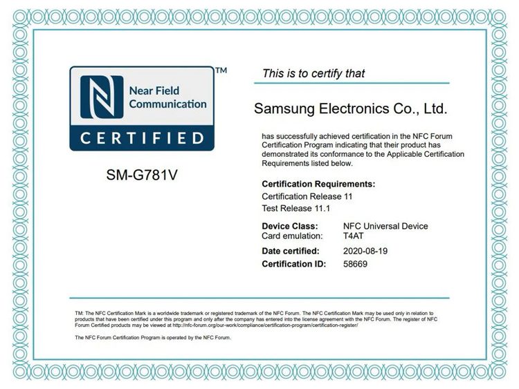 Os dados de certificação do NFC Forum indicam a preparação das versões SM-G781V e SM-G780F. O primeiro receberá suporte para comunicações celulares de quinta geração (5G), o segundo não.