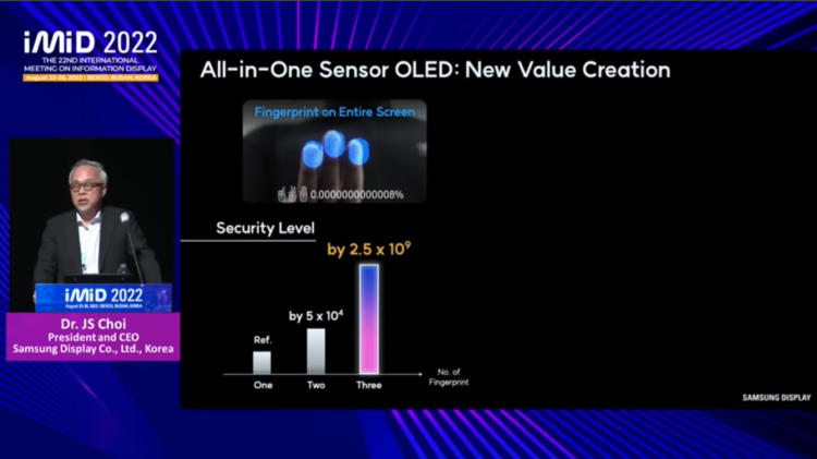 De acordo com a Samsung Display, usar três impressões digitais ao mesmo tempo para autenticação é 2,5 bilhões de vezes mais seguro do que digitalizar apenas um dedo. Além desse benefício óbvio, a tecnologia da Samsung funcionará em toda a superfície da tela, e não apenas em uma parte dela. Os usuários de smartphones e tablets Samsung não precisarão mais se preocupar em colocar os dedos no lugar certo para autenticação, pois toda a área da tela pode funcionar como um scanner.