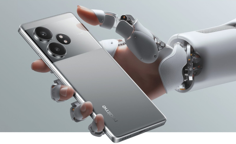 Há um par de câmeras no painel traseiro: a principal oferece sensor Sony IMX882 de 50 megapixels e estabilização ótica de imagem, a segunda possui lente grande angular e sensor de 8 megapixels. O smartphone roda o sistema operacional Google Android 14 com Realme UI 5. A bateria de 5500 mAh suporta carregamento sem fio SuperVOOC de 100 W. O aparelho também oferece proteção IP65 (contra poeira e jatos de água) e alto-falantes estéreo.